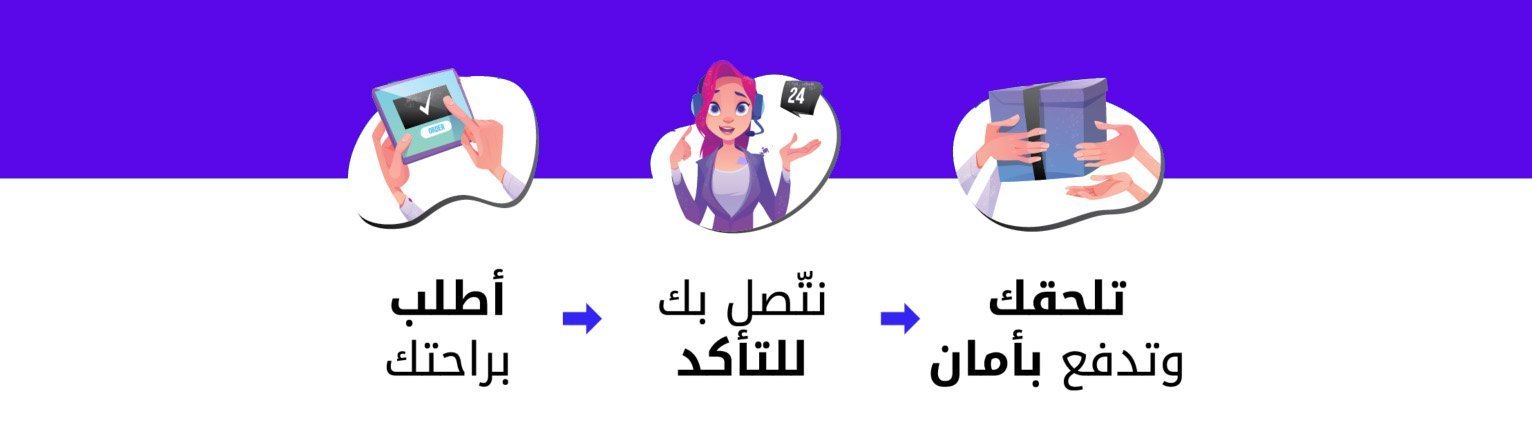 وسنقوم بإرسال المنتج إلى المكان المتفق عليه (المدينة أو الحي أو المنزل، مكان العمل أو مكان اخر)، وبعدها يتم الدفع.